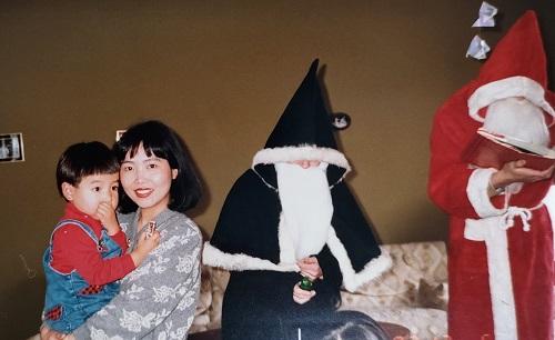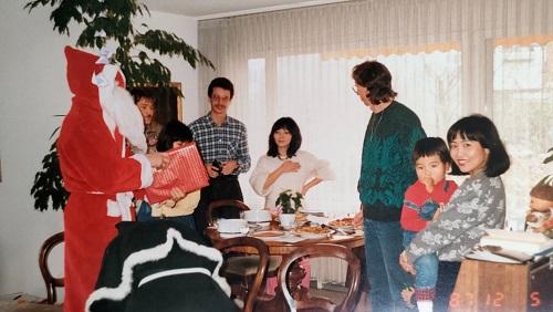 しばらくすると、「ピンポン」とベルがなったのでドアを開けてみると、なんとそこには赤と黒のサンタさんが大きな袋を持って立っていたのです。子どもたちは興奮して歓声を上げて喜んだのは言うまでもありません。とにかく中に入っていただきました。でも、かれらこそが欠席だと言っていた青年たちが変装をして私達を驚かせてくれたのでした。青年たちは私達への感謝の気持を表すためにこのような思い出をくださいました。まさに、スイスで迎えたクリスマスの最高の贈りものだったのです。