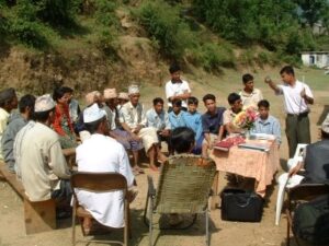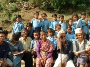 こうして山の泉から2㎞のパイプで学校まで水を引くための資材購入の資金を捻出できましたので、夫と私は飛行機に乗りその後、2泊しながら車に乗ってカトマンズを出発して3日目についにドティーの山の中の小さな小学校に着いたのでした。村の人々が学校に集まり会議をし、村人が資材を利用して工事を自ら行うことになりました。まもなく素晴らしい水道が学校に設置されました。