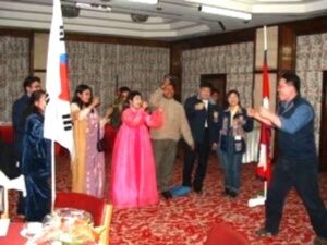 韓国教会のご夫人がキムパブ(韓国のり巻寿司)を作って協力をしてくださいました。私はプルコギ(焼き肉)はじめ,チャプチェなど色々なお惣菜をできる限り用意したのです。また、韓国大使館に行き韓国の国旗を借りてきました。開幕に三男宣道が韓国の国歌をトランペットで吹き、ネパールの国歌はバンスリのグループが演奏をしてくださいました。