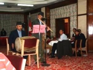 これはチトワンの宣教師に伺ったのですが、西のドティーというところは山岳地帯で交通事情が悪く、病院へ行くにも歩いて1週間かかり、経済的活動も困難で貧しく、娘たちはインドへ出稼ぎに行く土地です。トイレもなく、安全な水もないので寄生虫や下痢などが日常茶飯事だということでした。村人の希望を聞くと水道を設置したいということでしたので、早速募金を始めました。息子たちの通うインターナショナルスクールの校長に募金の御願いに行きましたがなかなか集まりませんでした。そこで、思いついたことがありました。家の近くの3星ホテルに行き、できるだけ安く借りられるように交渉をしたのです。大きなホールを貸し切りにし、飲み物はホテルの利益がでるようにお客さんがそれぞれオーダーをし、その代わり食事は私が出すというディナーショーを企画したのです。「Korean Night」と称して、デイナー券を発行しました。食事とともに夫が習っていたバンスリという横笛の先生(Mr.ラーマン.マハラジャ)が中心で編成している音楽グループのみなさんが無料で演奏をしてくださるということになりました。