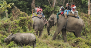 彼女たちがカトマンズに到着して数日後に、私達3人はチトワンに向かいました。プロペラ飛行機に乗ってチトワンに飛び立ったのですが、途中で悪天候になりまたカトマンズに戻ることになりどうなるのかと心配しましたが、また飛行許可がでて無事にチトワン空港にたどり着きました。まずはホテルまで人力車2台で行きましたが、それが珍しくてまた、大きく揺れたのがちょっぴりスリルもあってなかなか楽しい女性3人の旅になったのです。観光では象にも乗り、まるで子供になった気分でした。