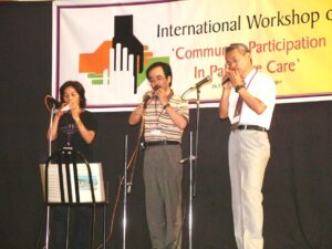 私達はケララから福岡に2004年一月に一時帰国をしたときに、福岡のホスピスの会に電話をして緩和医療に携わっておられる医師がおられないかと問い合わせをしました。ちょうどその電話を深堀さんというクリスチャンのご婦人が受けてくださり、「そういうことでしたら、是非とも患者さんに優しい診療をされている「にのさかクリニック」の院長である二ノ坂保喜先生にコンタクトを取られたら良いですよ。」と紹介してくださったのです。夫と私は早速「にのさかクリニック」をお訪ねしました。先生はケララの医療事情をお話すると大変関心を持ってくださったばかりでなく、是非とも11月にケララの緩和医療主催で行われる「緩和ケアの国際ワークショップ」に参加したいと仰ってくださったのです。その上、その時初めてお会いしたにもかかわらず、5月には公民館を借りてくださって夫の講演会を企画してくださったのでした。