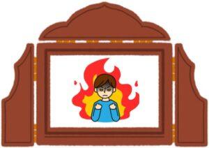 「今日は、お父さんとお母さんがこのたとえ話の紙芝居を簡単に作ったので、それを見ながらみんなで考えたいと思っているんだよ。」