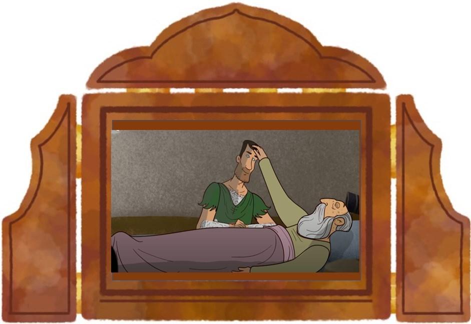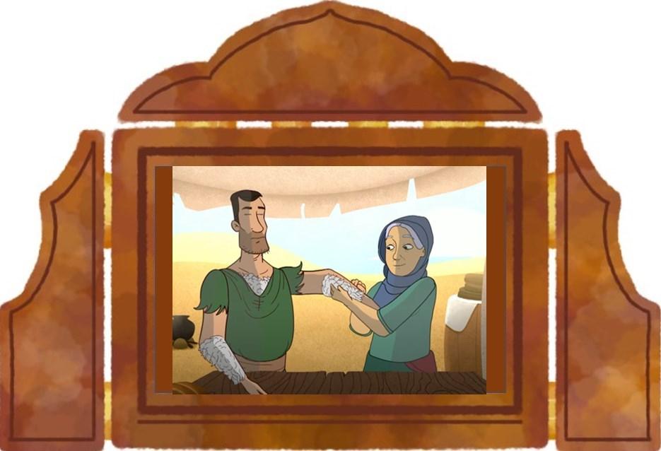 その間に、レベカは、ヤコブをエサウに似せて目の見えないイサクをだまそうと、毛深いエサウのようにヤコブの体にヤギの毛皮を巻きつけました。